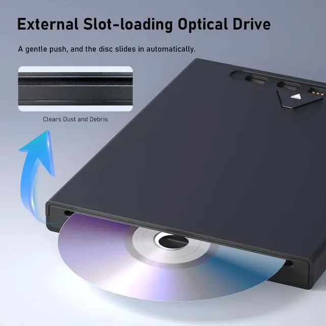 Inhalation Design: The external optical drive features a unique Inhalation design, which, compared to traditional tray-loading drives, prevents dust from entering the internal core components, reducing the risk of failure and extending the usb bluray drive's lifesp