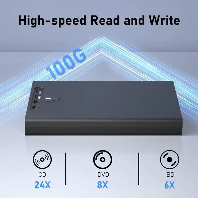Supports 100GB Discs: This external blu-ray drives offer massive storage capacity, making it ideal for storing movies, backing up data, installing software, or storing large games. Additionally, the external blu ray burner supports burning standard CDs and DVDs with capacities of 8.5GB, 4.7GB, and 700MB
