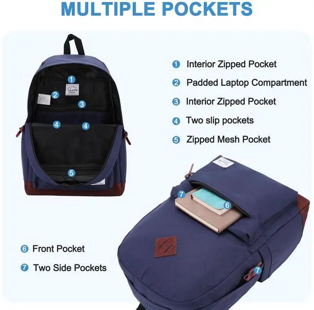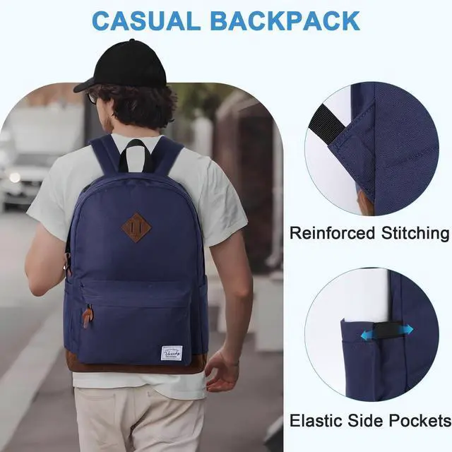 VASCHY School Backpacks for Adults Classic Lightweight Water Resistant Campus Rucksack Blue