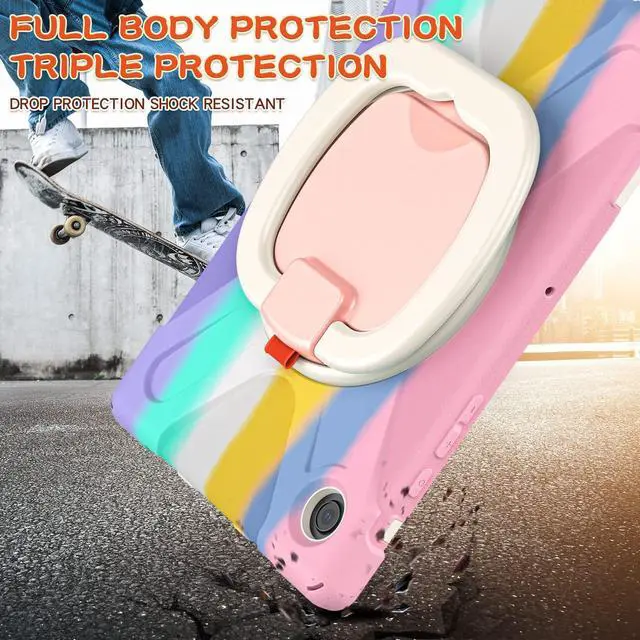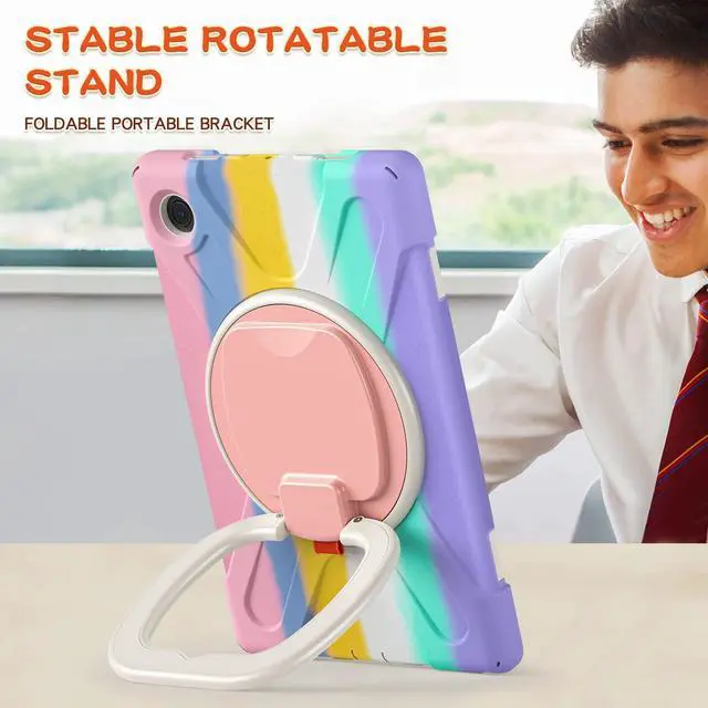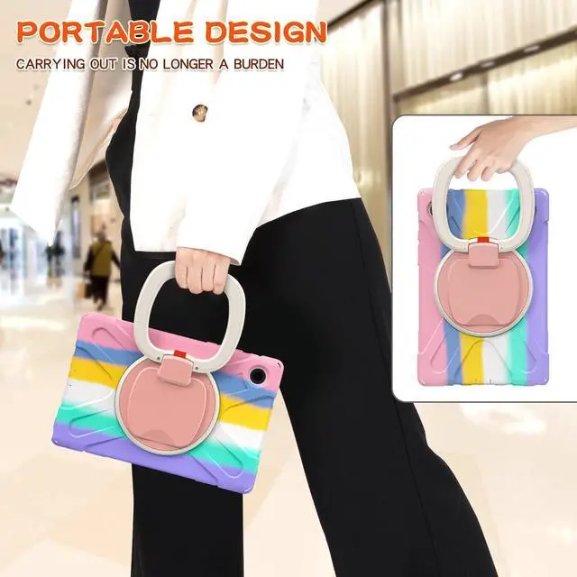 PboyiqiS Case for Galaxy Tab A8 10.5" 2022 (SM-X200/ X205/ X207), Heavy Duty Protective Case with 360 Degree Swivel Stand&Hand Strap&Shoulder Strap (Colourful Pink)