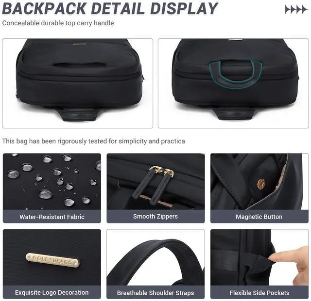 GOLF SUPAGS Women Laptop Backpack Fits 15.6 Inch Notebook Casual Daypack Everyday Bag for Work Travel College Backpack Book Bags (Black)