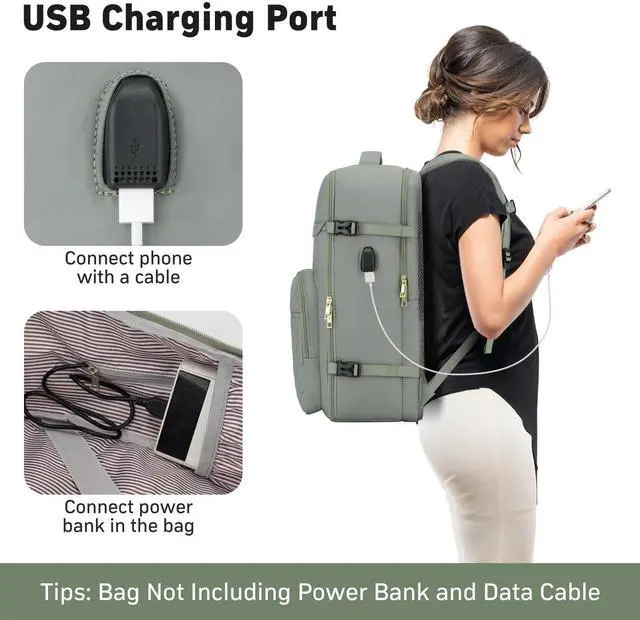 Anti-Theft Travel Bag with USB Charging & Luggage Strap:A hidden back anti-theft pocket secures valuables, while the built-in USB port (requires power bank) keeps devices charged. Attach securely to rolling luggage via strap for hands-free transit.