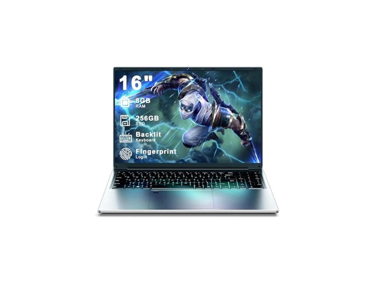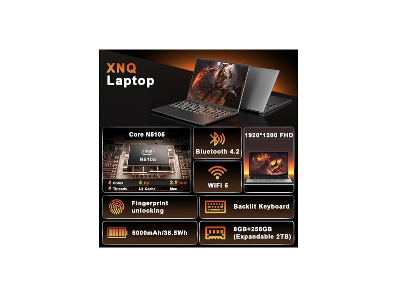 XNQ Gaming Laptop Computer 2025, 16 Inch 1920 * 1200 FHD IPS Lap Top PC, 8GB RAM 256GB ROM, N5105 Processor, 5000mAh Battery, Backlit Keyboard, USB3.0 * 2, Fingerprint Unlock, HDMI, Wifi5, Win 11 pro