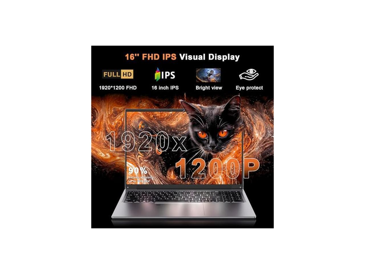- 16" FHD IPS DisplayWin 11 Pro lap top comes with a 16-inch 1920×1200 FHD IPS screen with a 16:10 golden aspect ratio and ultra-narrow bezels, maximizing visual real estate for immersive viewing. Equipped with an anti-glare coating and eye-friendly technology, it significantly reduces eye strain during long work or entertainment sessionsperfect for remote workers, students, or binge-watchers. Plus, the IPS panel delivers wide viewing angles, ensuring vibrant, true-to-life colors from any position. Crisp details, smooth visuals, and comfortable viewing combine to elevate your multitasking, streaming, and content creation experience.
