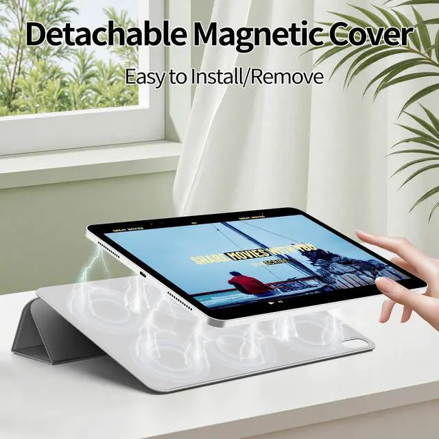 Magnetic Smart Case : Built-in strong magnets ensure your device attached firmly and easily, allowing you to easily use all buttons and features (camera, speaker, touch ID ports) of the tablet