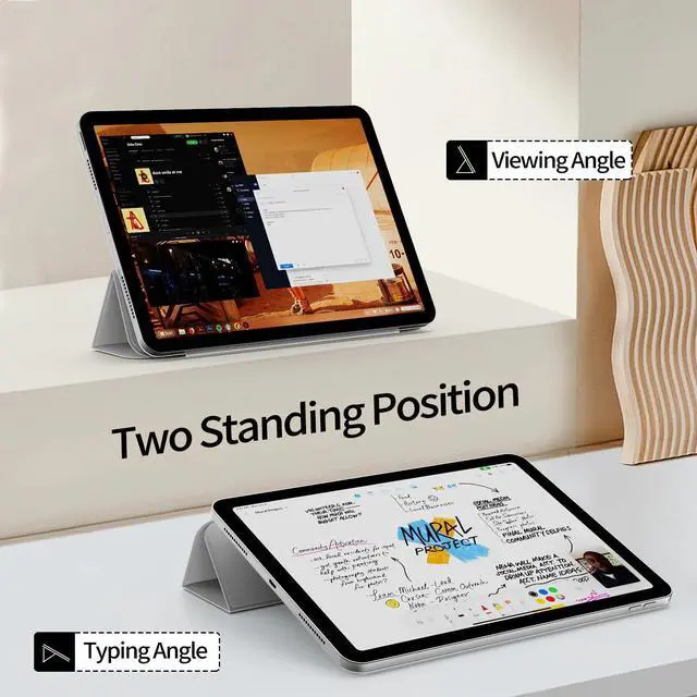 Tri-fold Case : The tri-fold front cover supports two standing positions to satisfy your viewing and typing needs