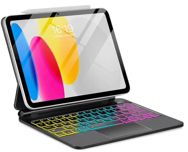 TabletKeyer Magic for iPad A16 11th/10th Generation Case with Keyboard, Trackpad Floating Rainbow Backlit Keypad with Cantilever Magnetic Cover for iPad 11-inch 2025/10 Gen 10.9" 2022 Black