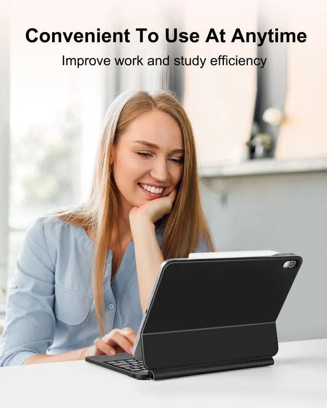 Magnetic Floating Stand, Multi-Angle AdjustableThis magic style keyboard case built-in strong magnets, which can adsorb your iPad firmly on the shell. The floating cantilever stand design allows you to easily adjust the angle of iPad. Whether it is typing, watching videos or making video calls, you can find the most suitable angle to meet the needs of different usage scenarios