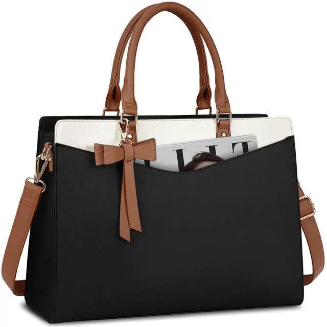 • Elegant Laptop Tote: RAINSMORE Work bags for women come with a detachable premium bow, adds an extra feminine touch to this minimalist laptop tote bag for women. To tie or not to tie, both which personalize your styles and retain a sense of chic. Perfect gift choices for anniversary, birthday, Mother's Day, Valentine's Day and Christmas. Tips: this laptop bag for women has been patented on its appearance