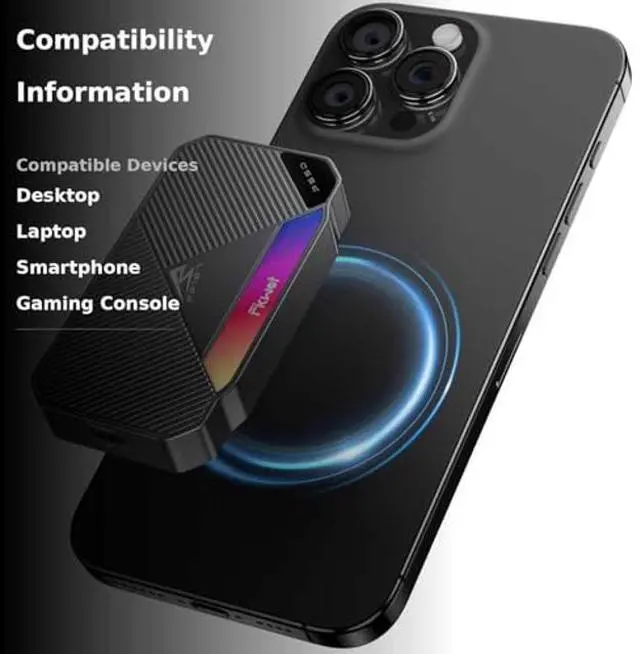Strong Magnetic Attachment: FP107 external SSD features a magnetic design, attaching easily and securely to the back of iPhone 15/16 during usefreeing your hands. Also includes 2 magnetic rings for non-magnetic devices.