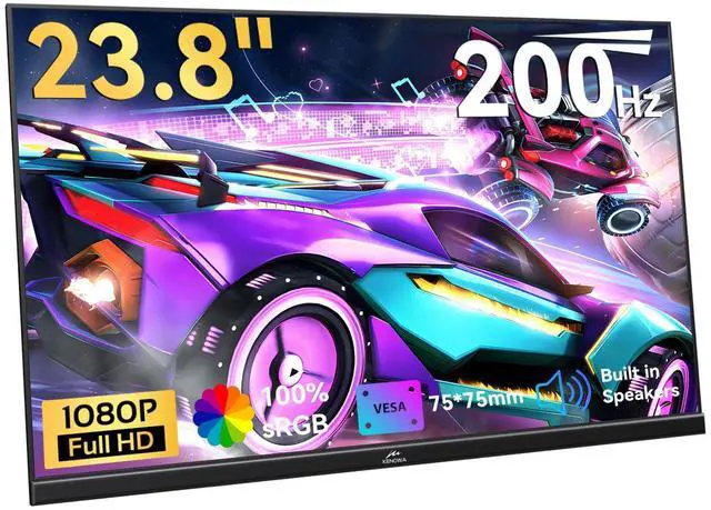 Kenowa 23.8" Large Portable Monitor 200Hz, IPS FHD 1080P Freesync External Monitor with USB-C HDMI Gaming Display Dual Speakers Adjustable Stand for PC Laptop Computer Mac Phone Xbox PS4/5
