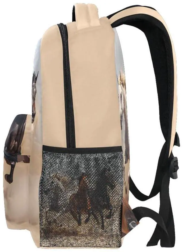 Roomy School Backpack: 1 main compartment, 4 inner open pockets, 1 inside zipper pouch, 1 front zipper pocket, 2 side water bottle mesh pocket