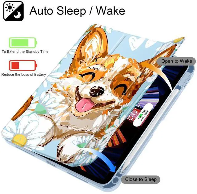 Lepeoac Case for iPad Air 11'' (M3 2025/M2 2024) 6th Gen/iPad Air 10.9 '' 2022 2020 Air 5th /4th Gen, Buit in Pencil Holder with Shockproof Cover Clear Transparent Back Auto Wake/Sleep, Cute Corgi Dog