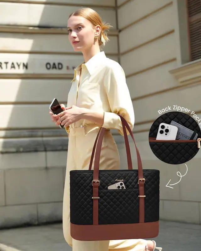 Elegant Laptop Tote Bag: Enhance your everyday style with this work tote bag, showcasing a beautiful diamond-quilted pattern. Designed for both elegance and sophistication, it's ideal for professional and casual settings alike.
