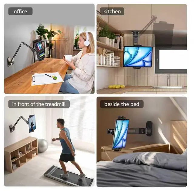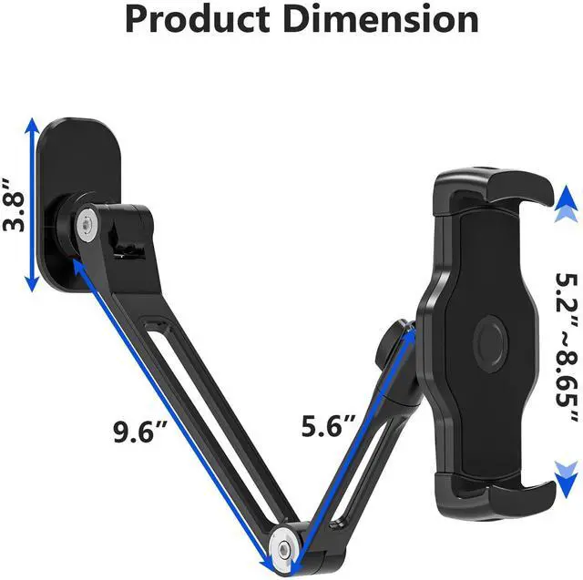 [Strong & Sturdy]The tablet wall mount arms were made by aluminum alloyand clamp and base is made of high quality ABS materialsWhich is very strong and stable without bending risk.