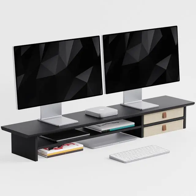 FENSULN DualTier Monitor Stand Riser with Drawers, Desktop Organizer Shelf Storage for Computer Screen 2 Monitors, Supports for PC Computer Monitor, Printer, Heavy TV Riser Black