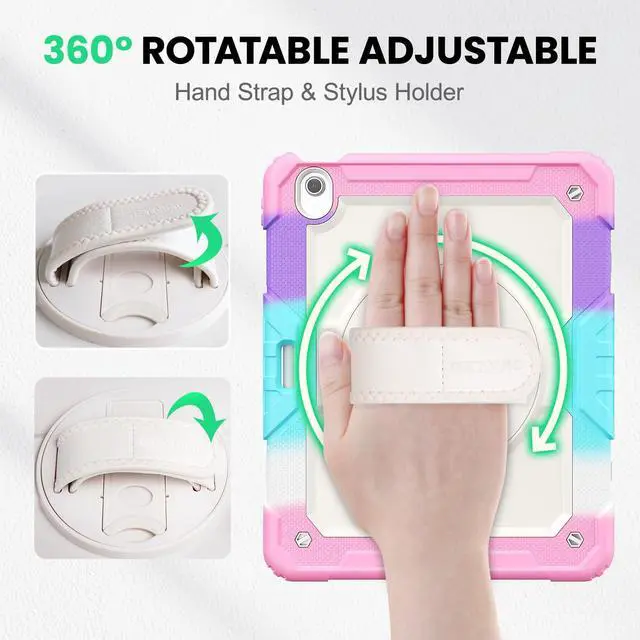 Versatile Stand and Handle: The tablet case comes with a stable stand and rotating handle, making it easy to use your tablet, for anything from video call to watching movie; provide full protection for your tablet screen with a built-in screen protector.