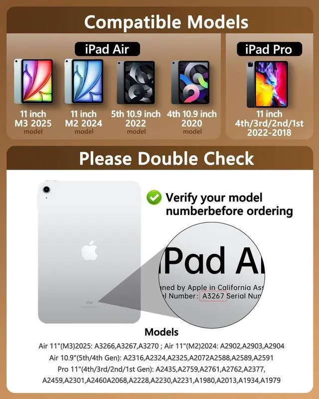 Wide Compatibility: Precisely designed for iPad Air 11 inch (M3/M2, 2025/2024 release) and iPad Pro 11 inch (4th/3rd/2nd/1st Gen), as well as iPad Air 10.9 inch 4th & 5th, models; A2759, A2435, A2761, A2759, A2435, A2761, A2316, A2324, A2325, A2072, A2377, A2459, A2301, A2460, A2068, A2228, A2230, A2231, A1980, A2013, A1934, and A1979 Generation. The transparent back shell showcases your device's original beauty while providing full protection.