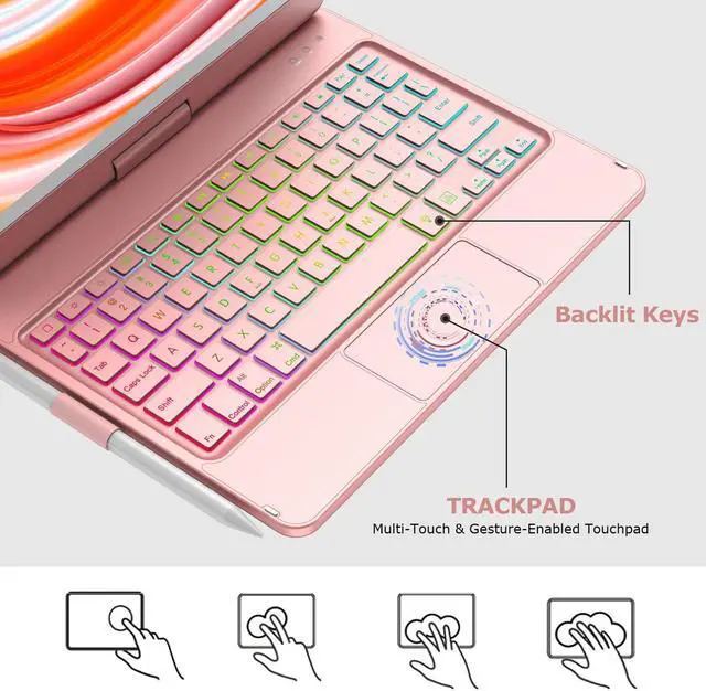CC Store Touchpad Keyboard Case for iPad 9th Generation 10.2", for iPad 9th/8th/7th Generation Case with Keyboard, Multi-Touch &Backlit Keys, 360° Rotatable &Pencil Holder, iPad 9th Gen (Rose Gold)