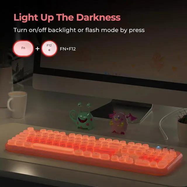 This wired backlit keyboard features ABS environment-friendly plastic, the UV coating ensures that are more fade-resistant. It supports plug-and-play functionality and boasts wide compatibility with Windows 7/8/9/10/11/95/98/XP/2000/ME/VISTA.