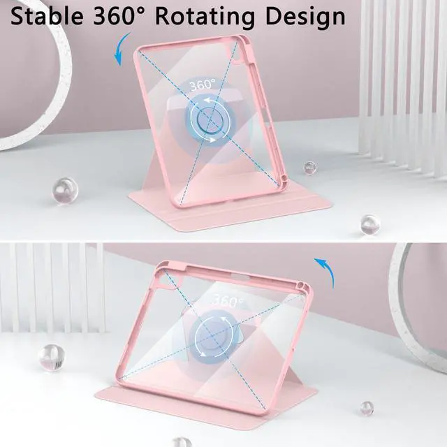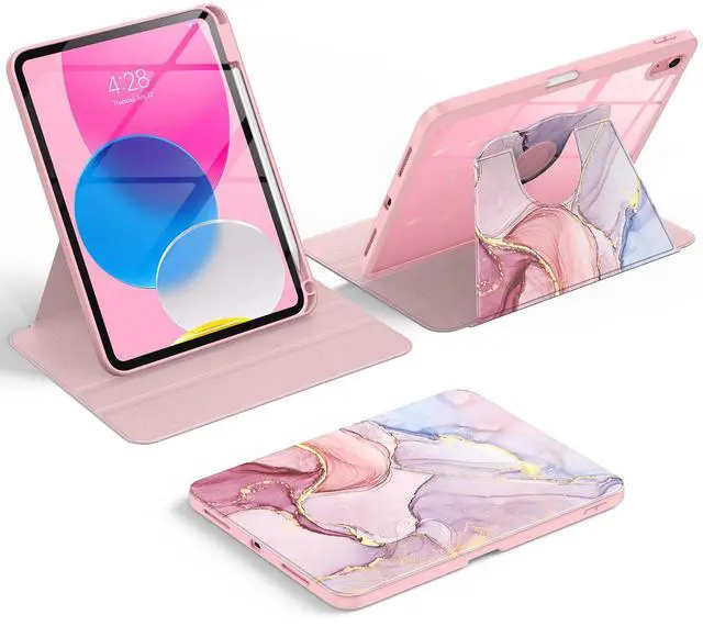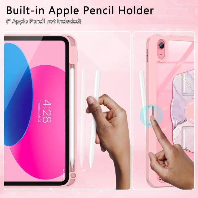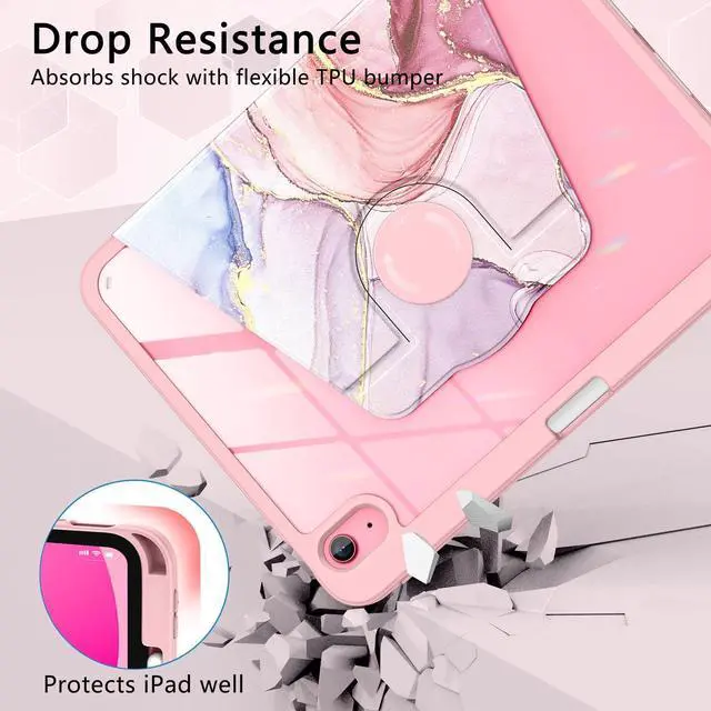 Soke Rotating Case for iPad (A16) 11th Generation 2025, iPad 10th Gen 2022 with Pencil Holder, [Shockproof + Auto Sleep/Wake] 360 Degree Rotation Clear Back for iPad 11"/ 10.9", Dreamy Marble