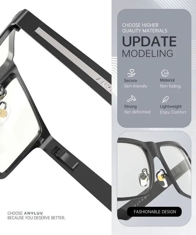 Lightweight Metal Frame: Men's blue light glasses are made of alloy, featuring excellent durability and portability. The choice of materials makes men's blue light glasses more durable. This also ensures the lightness of the glasses. The best-rated blue light glasses also feature anti-oxidation and anti-wear properties, which extend the product's lifespan and allow you to enjoy the protection of men's blue light glasses for a long time.
