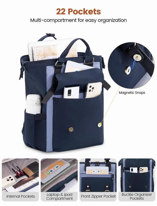 Stylish & Functional Design : This laptop backpack for women combines elegance with practicality. Featuring padded compartments for laptops and tablets, it keeps devices safe while maintaining a sleek design. Adjustable straps ensure comfort, and the wide opening with smooth-gliding zippers offers easy access to items. Perfect as a teacher bag or nurse bag.