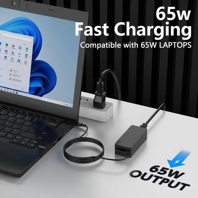 • Input: 100-240V, 50/60Hz; Connector Size: USB Type-C; Output : 20V, 3.25A, 65W