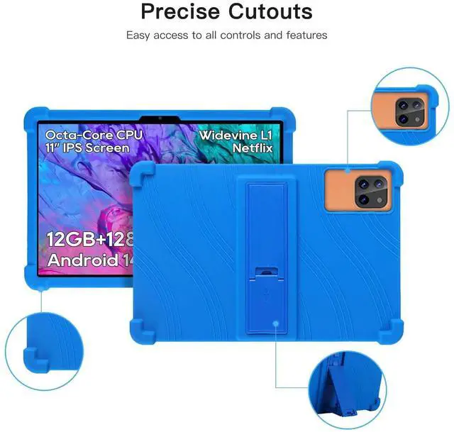 Protect your Tablet 11-inch tablet with this premium soft silicone case, designed for maximum durability and ease of use. Ideal for kids, the case features a non-toxic, eco-friendly material that provides a smooth and secure grip. The reinforced 4-corner shockproof design absorbs impacts, offering excellent protection against drops and bumps. An integrated adjustable stand allows for hands-free viewing, perfect for watching videos, playing games, or video chatting. Precision cutouts ensure full access to all buttons, ports, and cameras without removing the case, while its lightweight design keeps your tablet easy to handle.