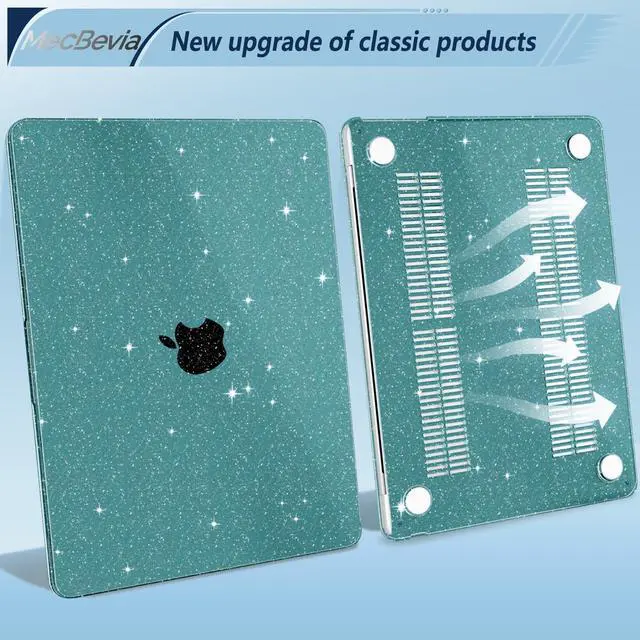 MecBevia Compatible with MacBook Air 13.6 inch Case, M4 A3240/M3 A3113/M2 A2681 (Released 2025 to 2022), Hard Shell, Keyboard Cover, Screen Protector, Webcam Cover & Type-C Adapter, Sparkly Teal