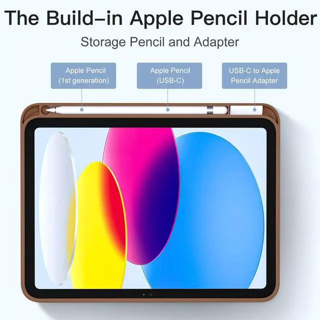 • Pencil Holder: The built-in pencil holder is designed for iPad 11th/10th gen case, you can put the Pencil 1st Generation and Pencil (USB-C) in the pencil hole when youre not using it, and avoid the losing or breaking them when youre walking or outdoor(Note: Pencil and adapter are NOT Included)