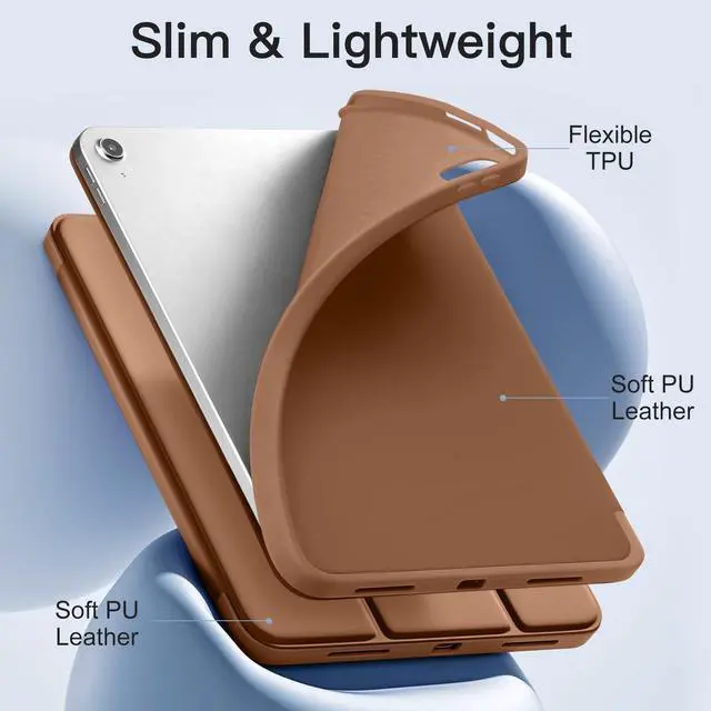 Akkerds Compatible with iPad (A16) 11th Generation Case 11 Inch 2025, for iPad 10th Generation Case 10.9 Inch 2022 with Pencil Holder, Slim Trifold Stand Protective Cover with Soft TPU Back, Brown