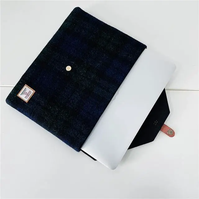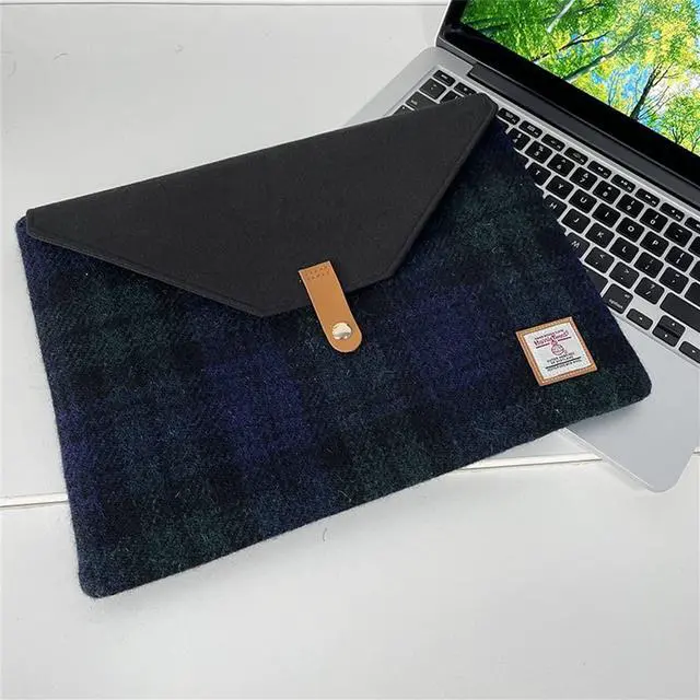 ^^ Structured Slim Design with Snap ClosureWith a minimalist envelope silhouette and secure snap button flap, this sleeve offers easy access while maintaining a sleek profile. Ideal for carrying on its own or slipping into a briefcase or tote. ^^ Timeless Gift for Professionals and CreativesThe combination of wool plaid and leather trim gives this case a distinctive look that suits any settingoffice, cafe, or campus. A thoughtful gift for MacBook users who value materials and craftsmanship.