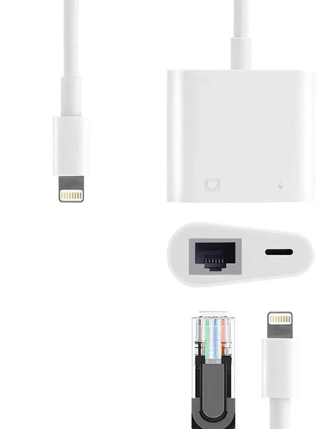 ^^ Compatible Device: This adapter compatible with multiple devices, such as iPhoneXR/XS/XS Plus, iPhone8/8 Plus, iPhone7/7 Plus, iPhone 6s / iPhone 6s Plus, iPhone 6 / 6 Plus, Pad Air/mini/Pro, Pod touch (5th Generation), Support iOS 11 and before. ^^ 2-in-1 Upgraded Multiport AdapterThis 2 in 1 Lightning to RJ45 Ethernet LAN Network Adapter includes Ethernet port, lightning charging port. You can use the Ethernet interface alone and the Ethernet port and charging port can also be used at the same time! ^^