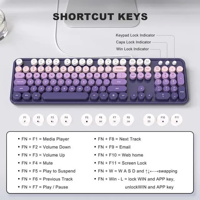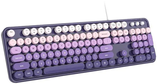 USB wired keyboard, cute appearance is specially designed for young people and ladies, it will become a good partner for office, school and family! Retro Typewriter KeyboardCute round keycaps, crisp and sweet sound, perfect knocking feel, let you find the feeling of a retro typewriter. And its detachable, make the keyboard easy to clean. Plug and PlaySimply connect your portable keyboard and computer with one USB cable, without any software. Plus it pairs almost instantly so you can get to using them in no time!