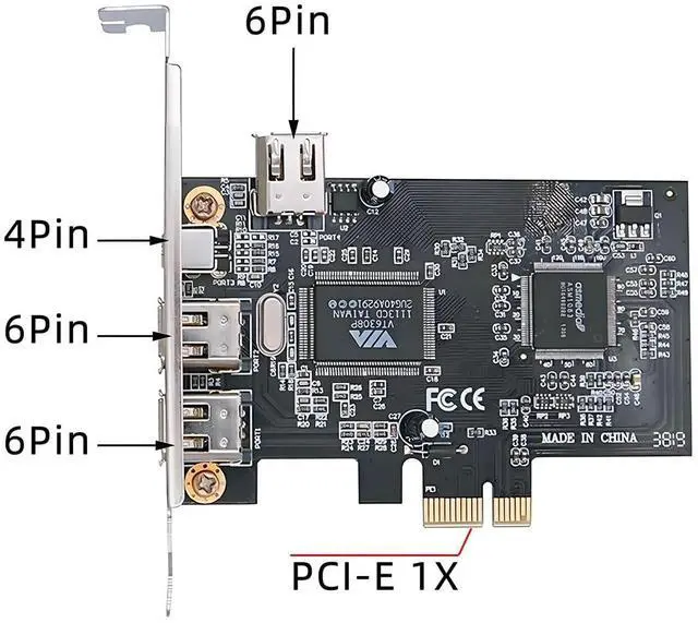 PCI-E 1X 4X 16X to Firewire 400 Capture Card IEEE 1394a PCI Express 4 Ports Card 6Pin and 4Pin IEEE-1394 400Mbps Adapter for Windows Mac Os Linux1) PCI-E 1X to 1394a card is plug-and-play, no need to install drivers, the card can be used immediately after installation, very easy to install. 2) IEEE 1394 firewire adapter is compatible with CD-ROM, DVD-ROM Drive, DV camcorders, disk recorders, digital cameras, camcorders, audio capture cards and audio devices, printers, scanners, digital video recorders, video editing cards, and devices with 1394A/B interfaces (such as data acquisition cards).