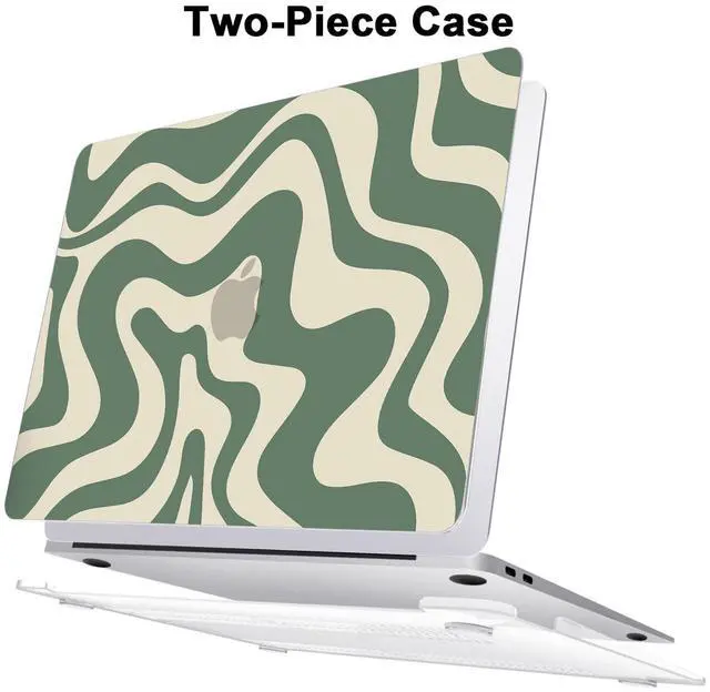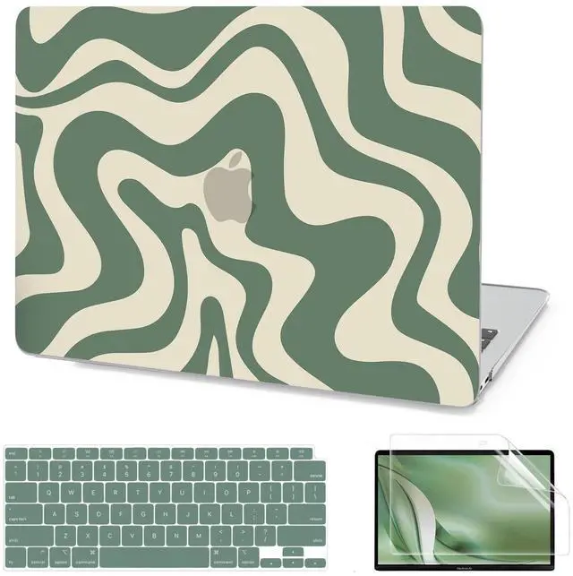 AKIT Compatible with MacBook Air 13 Inch Case M1 2022 2021 2020 2019 2018 A2337 A2179 A1932, Unique Pattern Hard Shell Laptop Case+Screen Protector+Keyboard Cover for MacBook Air 13.3 Inch, Green Wave