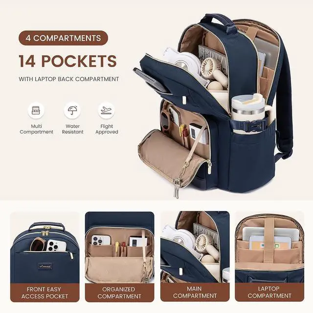 Bags College Backpack: The dedicated separate laptop compartment with cushioned cotton sewn around, has a dedicated separate 18.4 -inch laptop pocket, a 9.7 -inch iPad slot, fits your laptop perfectly and is padded for extra protection. It makes carrying your laptop so much easier. Professional and well made for work, business, travel, commuting, college, teacher, nurse, daily use as a practical gift for women. ^^