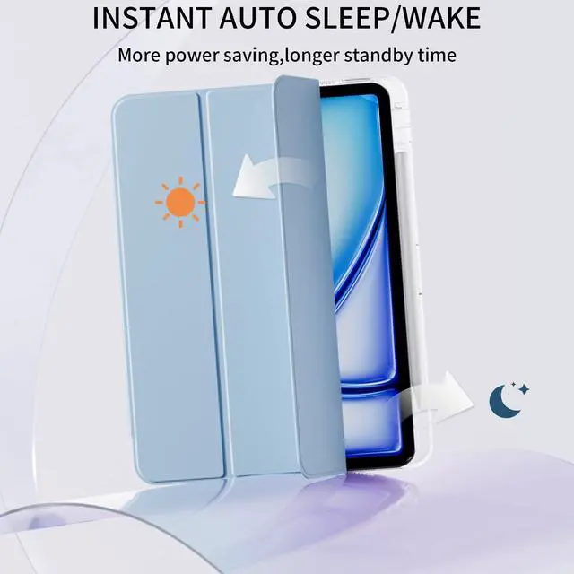 Auto Wake/Sleep: Magnetic cover provides auto sleep/wake feature. For iPad Air 11 inch case can automatically wakes or puts your tablet to sleep when the lid is opened and closed. Save much power and energy, so that reduce charging frequency, protect and extend battery life