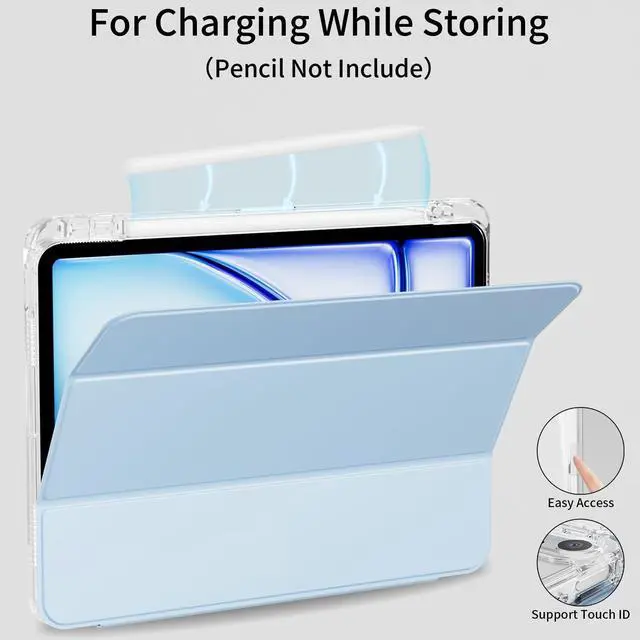Support Pencil Pro/2nd gen: Design with pencil holder, easily to pull out and store your pencil, Also side of this iPad Air M2 case supports the Pencil Pro/2nd gen attached to your tablet magnetically to pair without taking off the case and supports magnetically wireless charging, Easily store and remove your pencil. No need to worry it will fall off (Pencil NOT Included)
