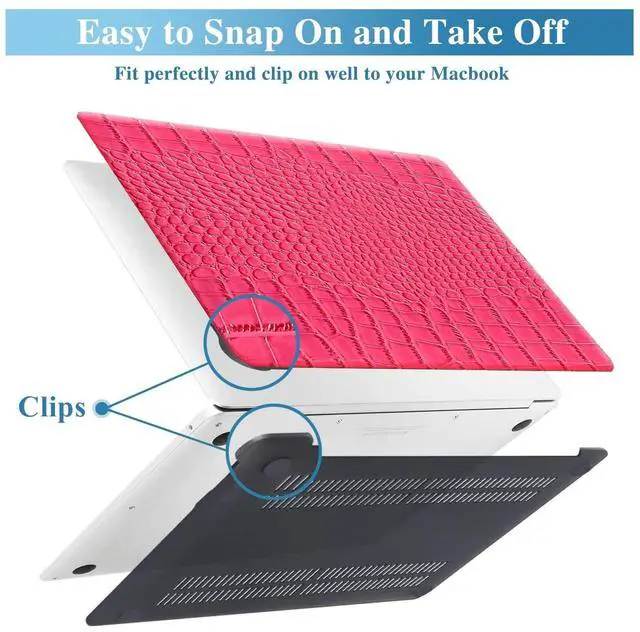 Features: Made of PU leather and PC materials, protecting your laptop from scratches and and everyday damage. This gorgeous crocodile-embossed macbook case has a vibrant and shiny finish that creates a striking visual effect. The rich, textured look of crocodile/alligator skin adds a tactile dimension to your device. Thoughtfully designed with a perfectly positioned cut-out for the logo. Snap-on design, easy to put on and remove. Fully access to all ports and buttons. The additional silicone keyboard skin protecting your keys from dust, spills and crumbs. Bottom vents help keep your laptop cool and four non-slip rubber pads keep your laptop in place. Snug fit, ultra-thin and lightweight, it won't add any noticeable weight or bulk to your laptop. Each piece of faux crocodile leather is crafted with its own unique natural grain. True luxury should be as unique as you are!