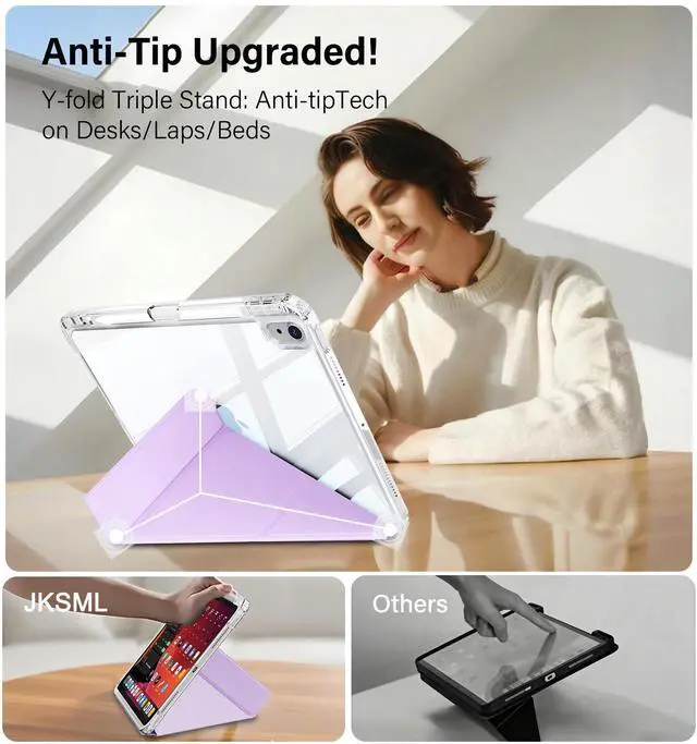Generation 10.9 -inch (2022): Models A2696/A2757/A2777. Confirm back "A" number before choosing this case to protect your investment. ^^ Fully Clear Hard backShow off your iPad's original sleek design with a fully transparent back that shines in sunlight. This iPad a16 case is perfect for personalizing with your favorite stickers or photos, making it uniquely yours. ^^ 8+ Viewing AngleA revolution in flexibility. This detachable sliding cover for the iPad 11th gen case works on 2 sides with 2 folding modes, creating 8+ angles. Perfect for watching, typing, or video calls. Say goodbye to limited views. ^^ Anti-tip Y-fold StandThe unique Y-fold design creates a wider, more stable triangle than old tri-folds. It won't tip over even when you type/press hard, keeping your i Pad 10th gen case steady on your lap, desk, or soft bed surface, etc. ^^ Shield Eco-fabricMade with advanced eco-material, the iPad 11-inch case resists stains, scratches, and fingerprints. Its textured surface provides a secure, anti-slip grip. Spills wipe away easily, keeping your case clean and iPad safe. ^^ 360 stable protectionThis iPad 11th gen case offers all-around security.