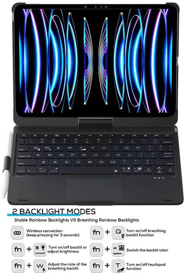 Keyboard Case for iPad Pro 13-Inch M5/M4 (2025/2024), 7 Color Backlight Tablet Keyboard Cases with Touchpad - 360 Rotatable Case with Pen Holder & Vertical Backlits Keyboard