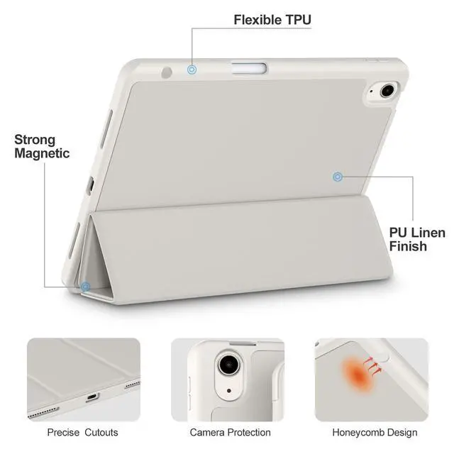 Auto Sleep/Wake Cover: The built-in magnetic strip is designed for iPad Air case 11 inch and Air 5/4 10.9 inch case automatically wakes or puts your tablet to sleep when the lid is opened and closed, protects and extends battery life. Easy access to all features and controls even with the case on ^^