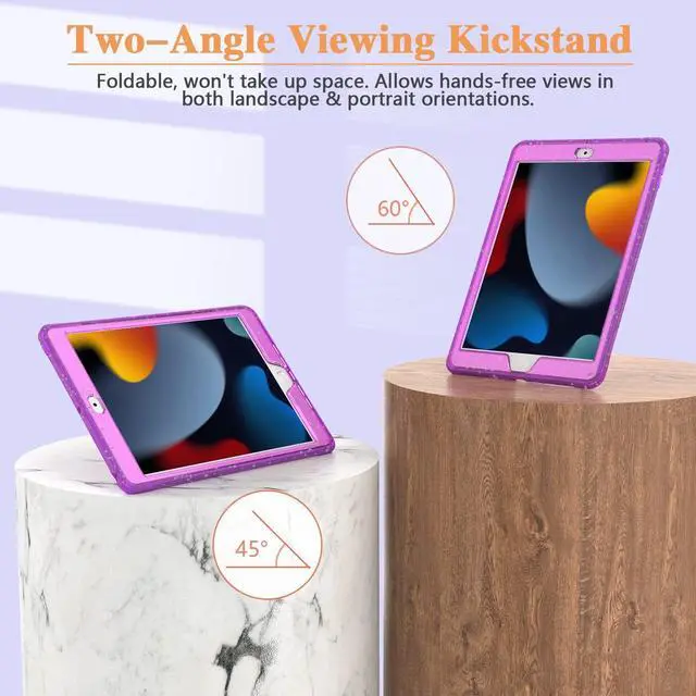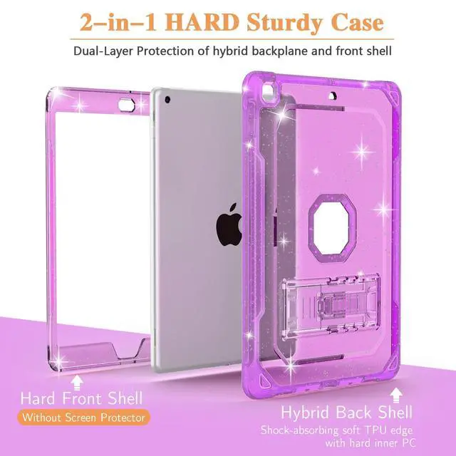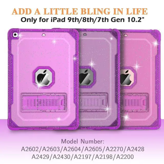 [Compatibility]- ZoneFoker glitter tablet case is only compatible with new Apple iPad 9th generation 2021, for 8th/7th generation 10.2 inch 2020/2019 release (Model number: A2197/A2198/A2200/A2270/A2428/A2429/A2430). Will NOT fit any other iPad. ^^ [Shockproof Rugged Design]- 2 In 1 structure of hybrid material backplane and hard front casing effectively protects your iPad 9th/8th/7th Generation 10.2" 2021/2020/2019 from scratches and accidental drops, bumps, and impacts. ^^ [Embedded Glitter Crystals]- Static glitter injection molded into the entire case, show off your iPad 10.2 inch while giving it ultimate protection. New translucent frosted glitter iPad 7th/8th/9th generation case is worth offering a beautiful and elegant gift choice for your family and friends. ^^ [Functional Kickstand]- Choose optimal viewing and typing positions (2 Mode) based on your needs that allows easy access to your favorite shows, movies, and games while on the go. ^^ [Precise Cutouts]- It's easy to access all buttons, speakers, cameras and sensors, all the ports are where they should be. It's also worth offering a beautiful gift choice for your family and friends, too. [3 Months Service] We provide 24-hour respond and 3-month refund or replacement. Do not hesitate to contact us if you have any questions for the product.