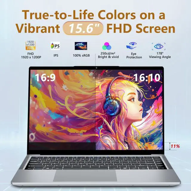 FHD Display: Enjoy sharp details and more vertical space on the 16:10 aspect ratio Full HD (1920 x 1200) screen. The laptop computer 250 nits brightness provides good clarity for work, streaming videos, and web browsing. ^^