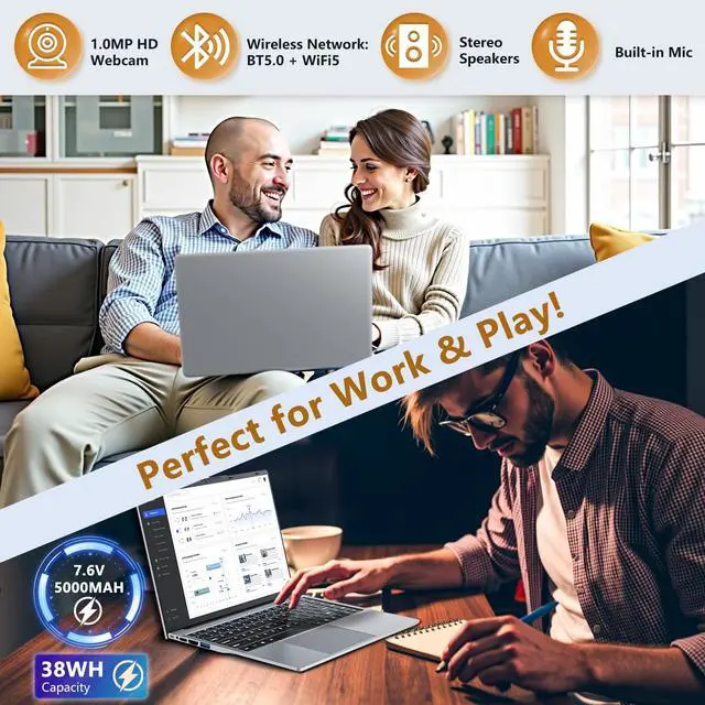 Work: i5 Laptop weighing just 1.5 kg (approx. 3.3 lbs) and featuring a sleek Space Gray design, this netbook is easy to carry. It comes pre-installed with Win 11 Pro and includes a 38Wh battery, making laptop core i5 suitable for home, school, or business use on the go.