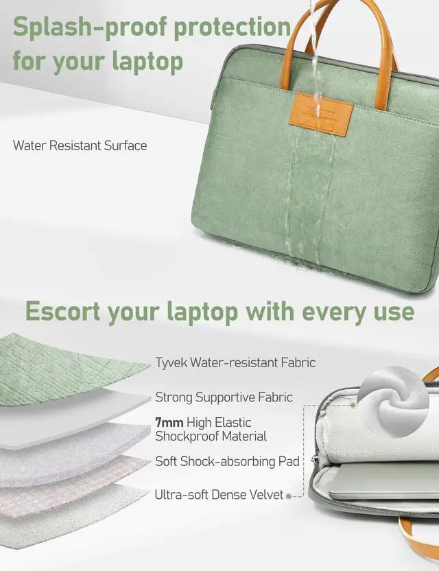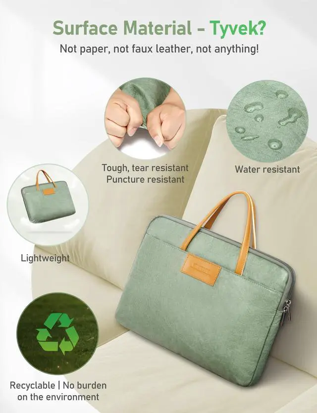 Unique & Non-Polluting: Tyvek used in this laptop bag is water-resistant and abrasion-resistant, which is a high-value recyclable material, which is non-toxic and will not cause any burden to the environment ^^ 360