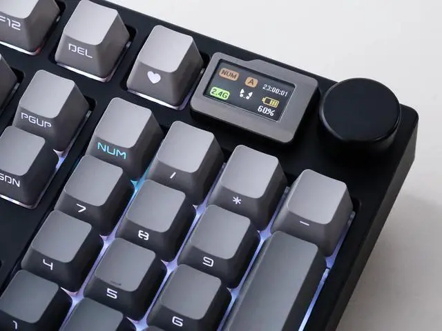 [Customizable Screen] Cutomize the little screen with your favorite images, adding a little enjoyment to relax your mind amidst the heavy workload. A maximum of 8 images (3 gif and 5 static) can be uploaded and interchanged. Shows time, battery, connection, Caps lock and Numlock by default ^^ [Handy Calculator] Conveniently and swiftly perform a quick calculation on the screen. Streamline your workflow by instantly calculating on-screen, eliminating the necessity of searching for a calculator or utilizing the computer's calculator. ^^ [Hot Swappable PCB] Enables convenient switch swapping to customize typing feel without the need for soldering.