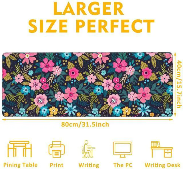 It maintains an even flatness, even on imperfect surfaces, allowing you to fully immerse yourself in your work or game without the annoyance of mouse pad movement. ^^ Exquisite PatternCrafted by professional designers, the patterns on our mouse pad are not just aesthetically pleasing but also add a unique charm to your desk. Perfect for everyone, whether you're a woman, girl, boy, or office professional. The vibrant colors stay bright and won't fade even after washing. This oversized mouse pad is an ideal gift for any occasion.
